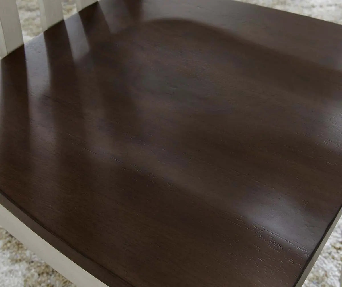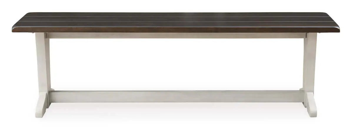 Make a farmhouse-inspired statement with this dining package. Its clean two-tone finish brings the charm of the countryside to your dining room. A versatile set, it adds a casually comfortable vibe to a variety of spaces. Includes table, 4 chairs & bench Features  Made with solid acacia wood, cherry veneer...