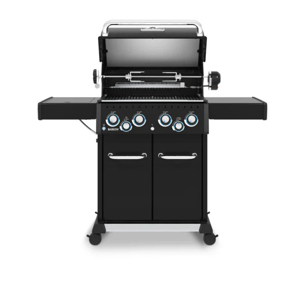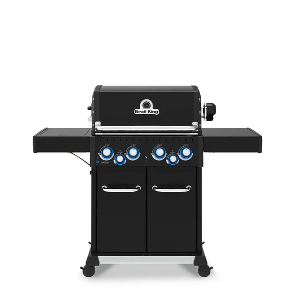 The Baron™ 400 Series boasts a whopping 2,864 sq. cm of primary cooking space, 4 stainless steel Dual-Tube™ burners, and a cast aluminum cookbox. It also includes reversible heavy-duty cast iron cooking grids, illuminated control knobs for extra flair, and a stainless steel Flav-R-Wave™ cooking system. Plus, you'll love the...