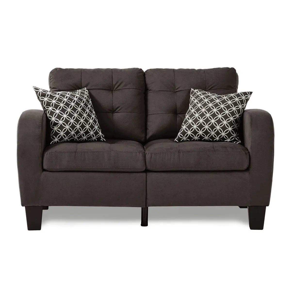 A hint of retro styling provides a clean and classic look for your contemporary home in the Sinclair Collection. The loveseat allows for the perfect placement within your living room. The fabric with contrast pillows that furthers the look and versatility for placement within a number of home decors. Solid...