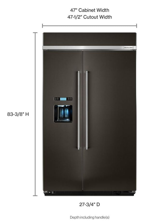 KitchenAid KBSD608EBS Built In Refrigerator, 48 inch Width, ENERGY STAR Certified, Counter Depth, 29.5 cu. ft. Capacity, Thru Door Ice Dispenser, Exterior Water Dispenser, LED Lighting, Fingerprint Resistant, Black Stainless Steel colour   Only One unit in stock!