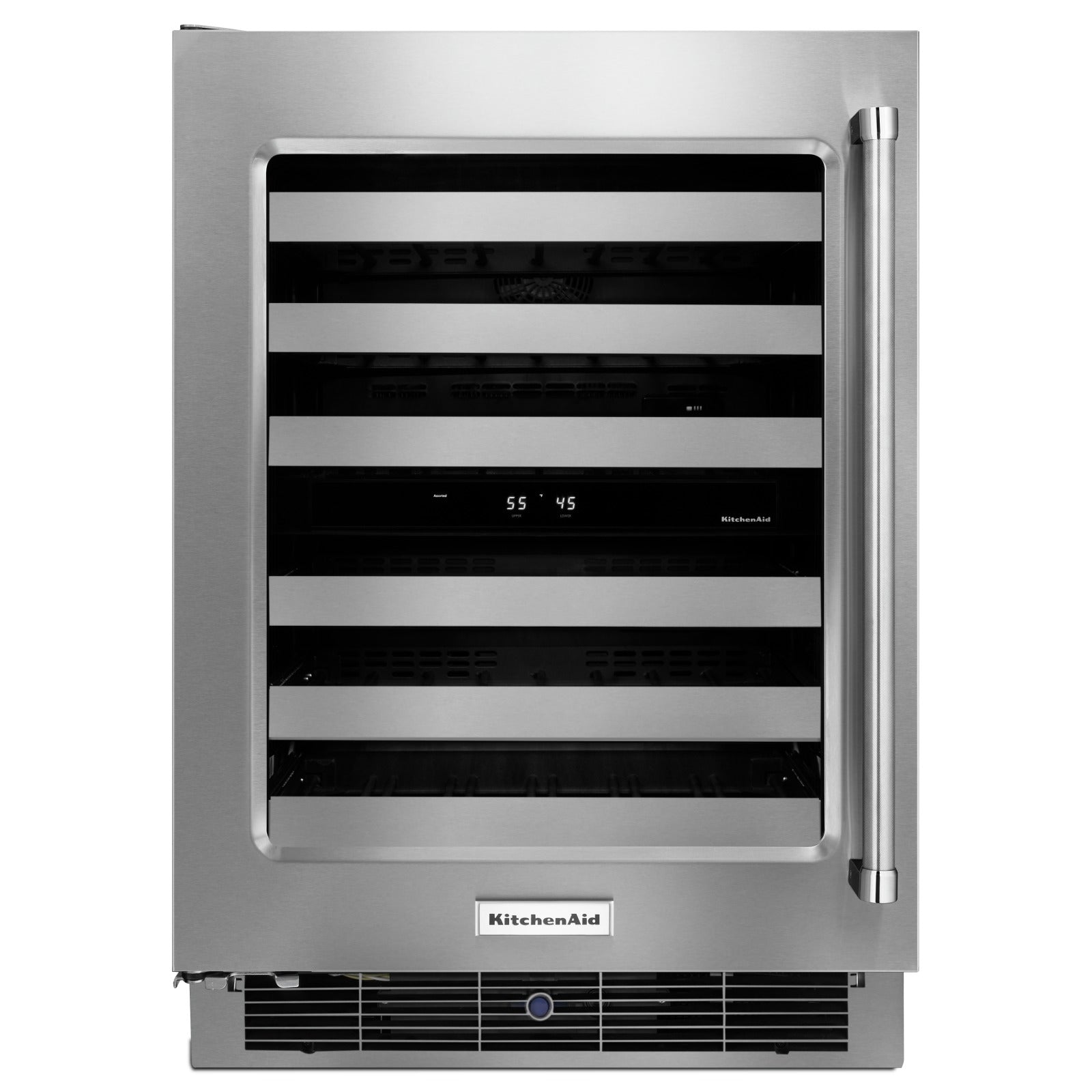 KitchenAid24 Inch Stainless Steel Wine Cellar with Metal-Front Racks