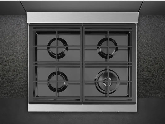 Description Features Specifications This beautiful Professional Series 06 inch freestanding dual fuel range from SMEG features four sealed burners for......
