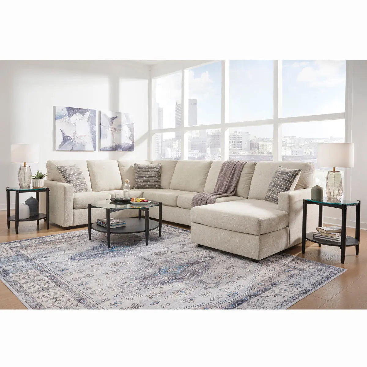 Ashley Edenfield 3Pc Sectional With Chaise in Linen Signature Design by Ashley