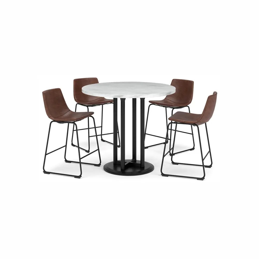When nothing but the best will do, you’ll find this 5-piece dining set checks all the boxes. Taking a stance for ultra-contemporary design, this modern version of the classic pedestal table features the look of authentic Carrara marble while tubular metal bases and contoured bucket seats on the bar stools...