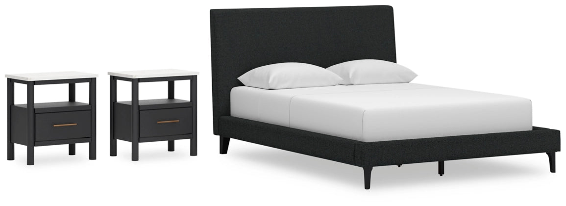Cadmori Queen Upholstered Bed with 2 Nightstands