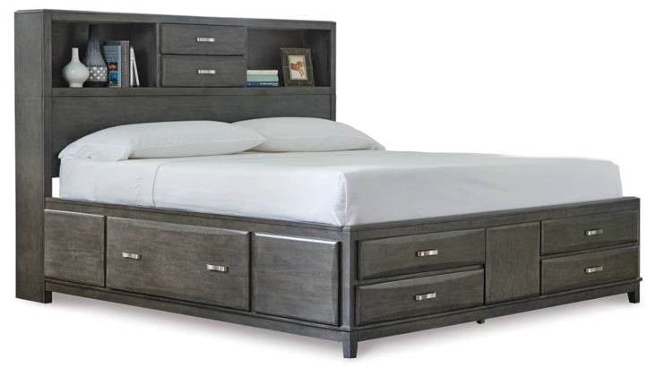 Caitbrook King Storage Bed with 8 Drawers in Gray