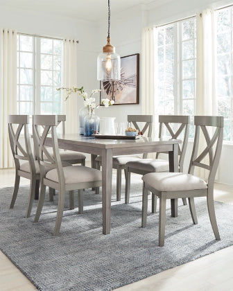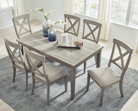 Description Features Specifications Bring a relaxed yet refined sense of good taste to a space with this casually cool dining set. Clean-lined frame sports a gray finish that’s so easy on the eyes. Topped by a durable melamine surface, the table’s an easy-living alternative to traditional wood tables. And with...