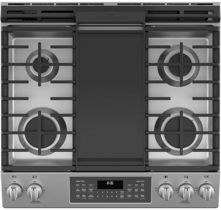 GE JCGSS86SPSS 30" Slide-In Front Control Gas Double Oven Range Stainless Steel
