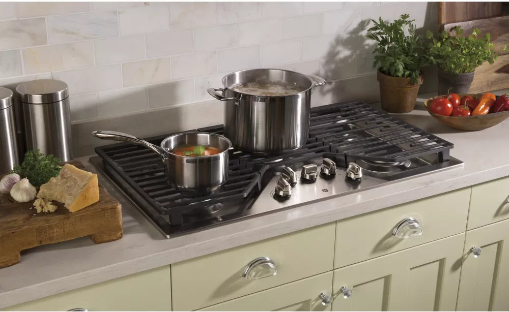 GE JGP5036SLSS 36" Built-In Gas Cooktop with 5 Burners and Dishwasher Safe Grates in Stainless Steel