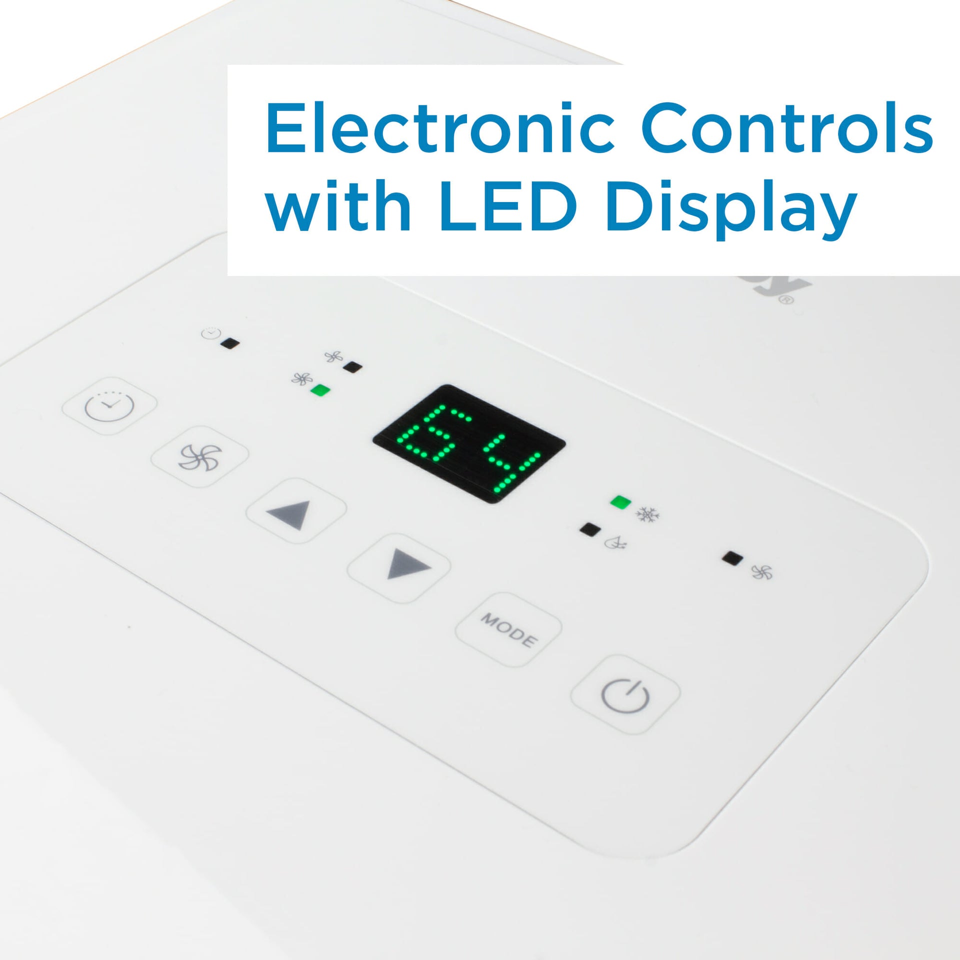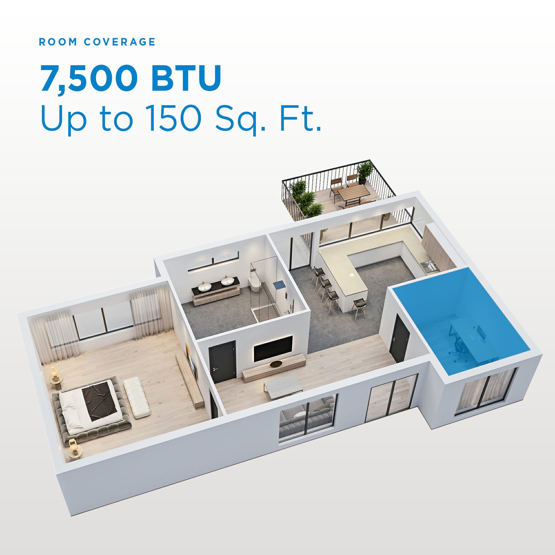Description Features Specifications This 7,500 BTU portable air conditioner is perfect for cooling bedrooms and other small living spaces up to 150 square feet. Its four castors make it easy to move from room-to-room and the single-hose design efficiently exhausts warm and humid air outside. The 24-hour programmable timer allows...
