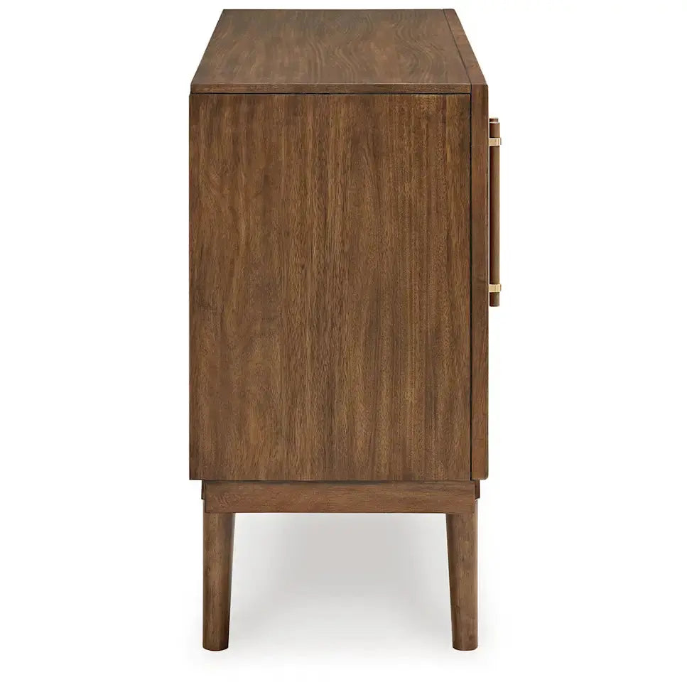 A refreshed take on retro aesthetics. This dining server adds an air of playful simplicity to your dining space, capturing the architectural language of mid-century stylings. Subtle in design, it invites the eye with a sleek, open woodwork.  Made with hardwood solids, mango wood veneer and MDF substrate Medium brown...