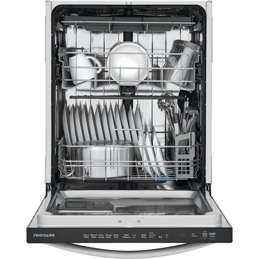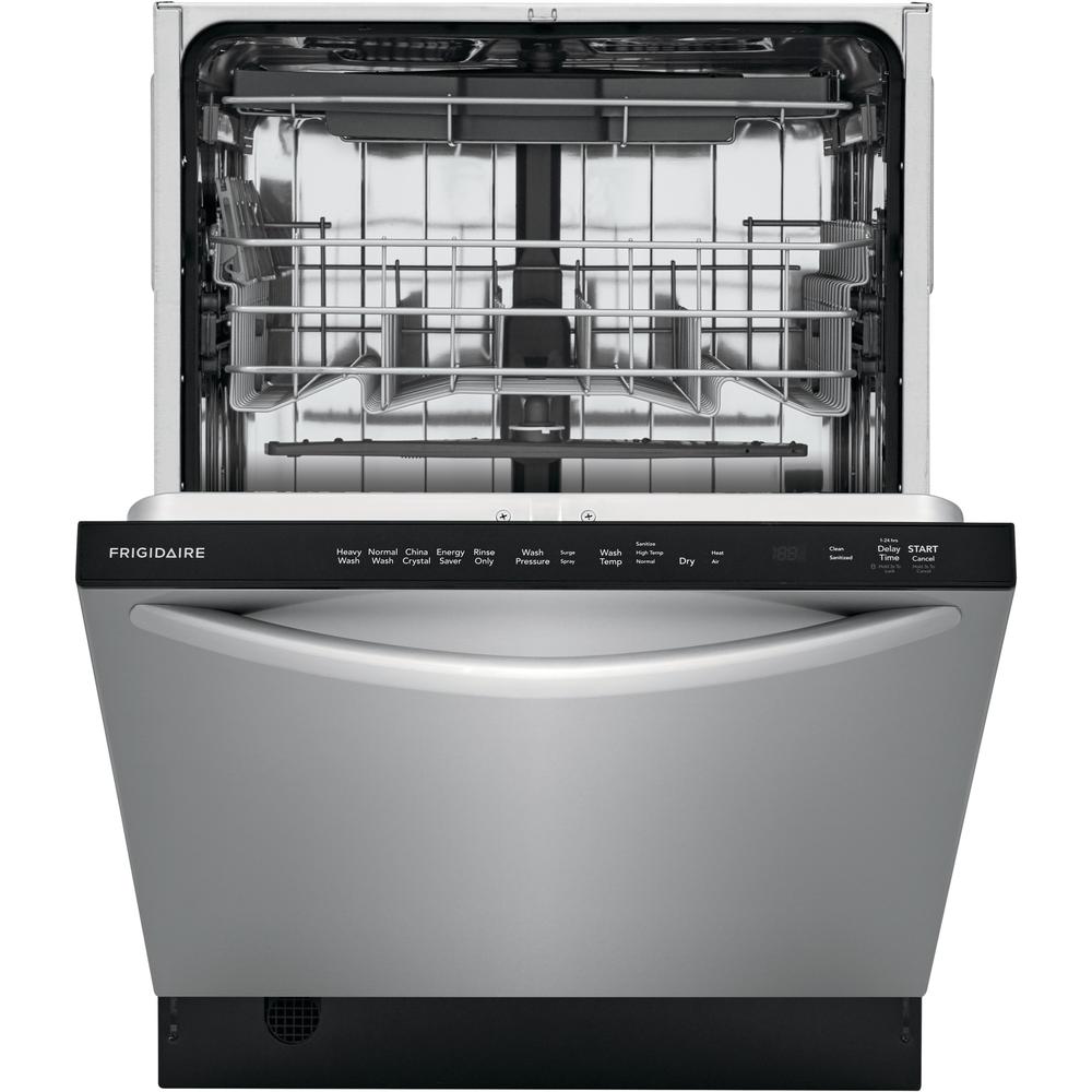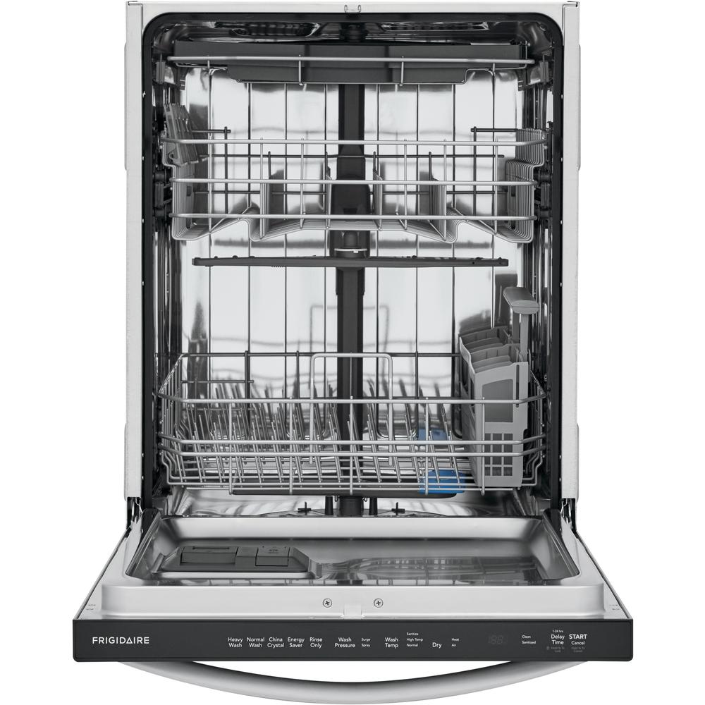 The Frigidaire 24" Stainless Steel Tub Built-In Dishwasher offers better water coverage from our BladeSpray Arm, so you get clean dishes, pans and utensils corner to corner. Loading and unloading is easier with our three level rack dishwasher. And you can expect your dishes to be dry the first time...