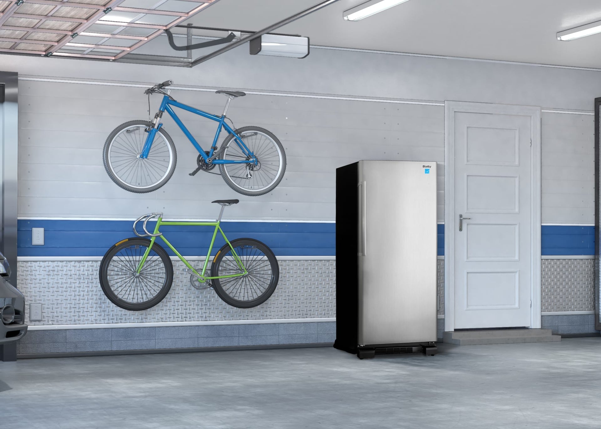 Description Features Specifications Stock up on your family’s frozen favorites with a Danby Designer upright freezer available in stainless steel look or white, ideal for a basement, kitchen, or garage. Save on floor space with a stand-up freezer. The Energy-efficient design means it will help cut down your monthly electricity...