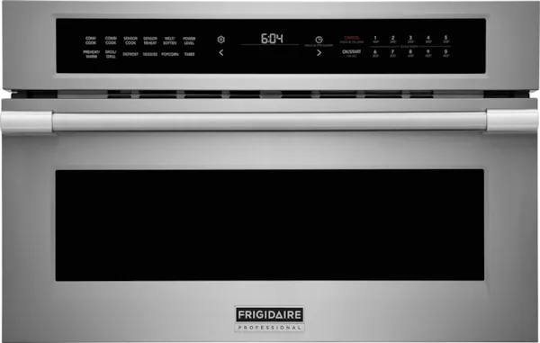 The Frigidaire Professional 30" Drop Down Door Microwave features Convection Bake Technology. Prepare grilled favorites like steaks or sandwiches right inside your microwave with Grill/Broil mode. Plus, enjoy features like Combi Cook, Sensor Cook, Sensor Reheat and Keep Warm offer time savings so that you can put delicious meals on...