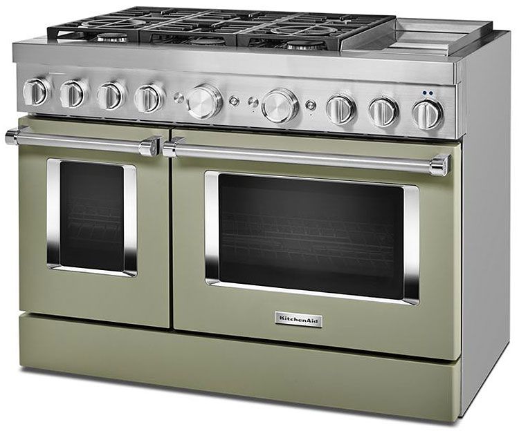 KitchenAid KFDC558JAV 48" Smart Commercial-style Dual Fuel Range With Griddle in Avocado Cream
