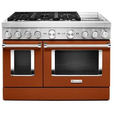 KitchenAid KFDC558JSC 48" Smart Commercial-style Dual Fuel Range With Griddle in Scorched Orange