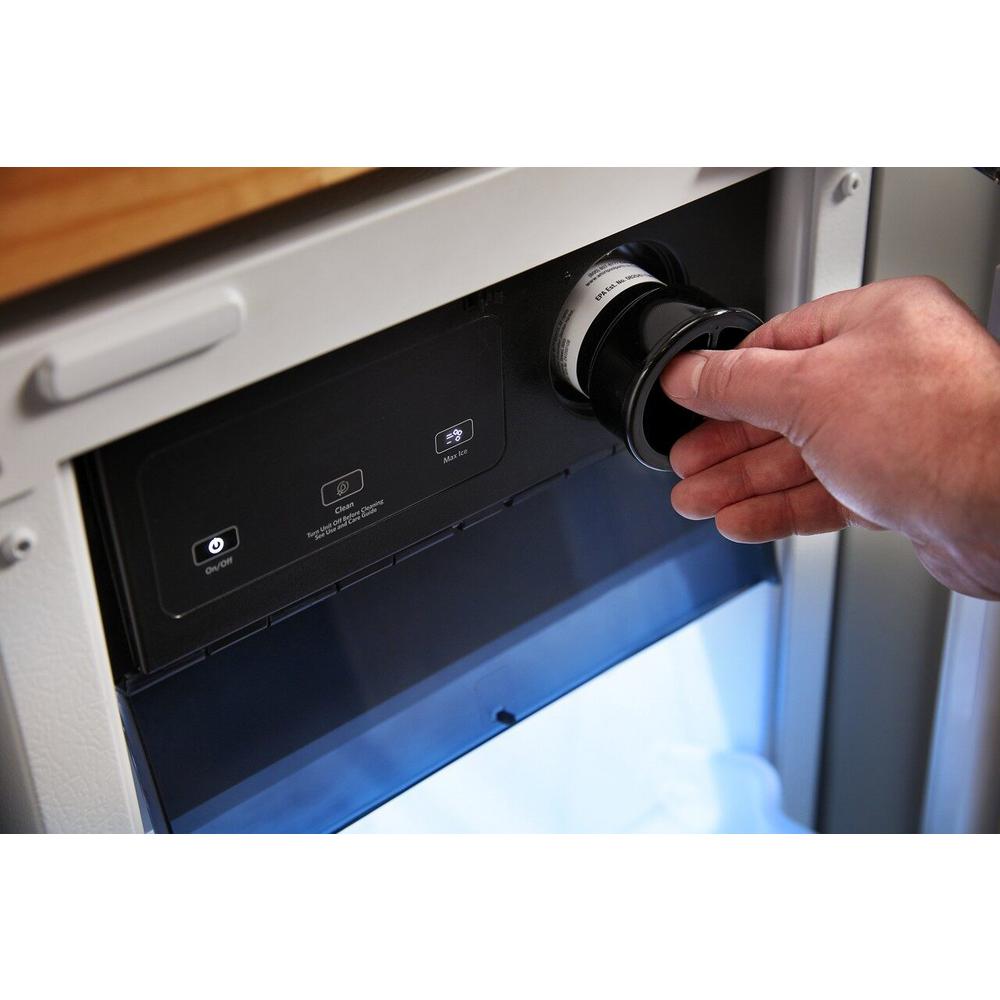 Provides a dedicated space where a filter can be inserted to help remove contaminants, improving taste and clarity. A filter is not required but can be purchased separately. Use filter #F2WC9I1 and change every six months for best results.