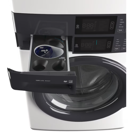 Full-size and fully integrated front load electric Electrolux Laundry Tower features a stacked design that takes up half the floor space, freeing up the laundry room for extra storage, all with an easy to reach control panel. The washer features LuxCare® Wash that provides a thorough clean to clothes and...