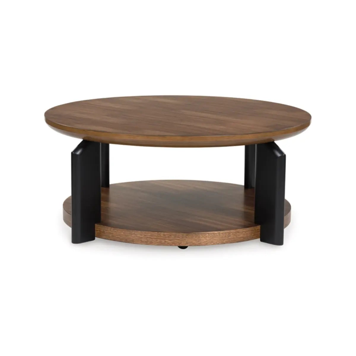 Experience the captivating allure of this coffee table, an effortless blend of casual and refined aesthetics. Its two-tone finish combines satin black with a rich brown wood tone for a modern, relaxed vibe that you'll love. Perfectly suited for your contemporary home, it offers open storage to accommodate your favorite...
