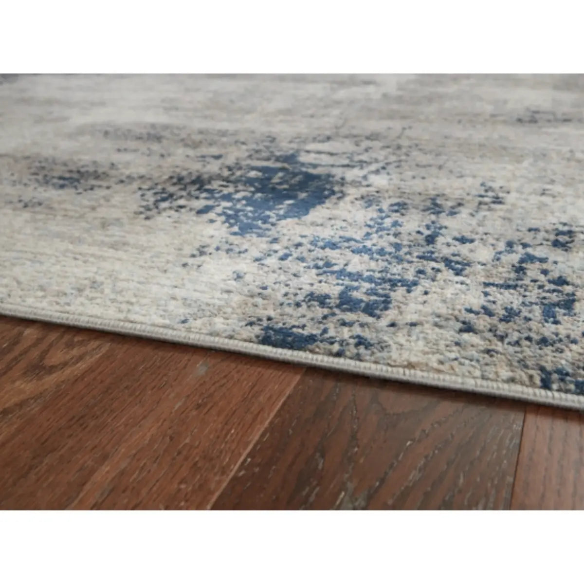 With its striking abstract design, the Wrenstow rug leaves so much to the imagination. Its ethereal design dresses up a room with ivory, beige, gray and shades of blue, adding visual texture and a highly contemporary point of view. Features: Made of heat set polypropylene Machine woven 8mm pile Backed...