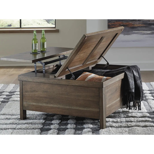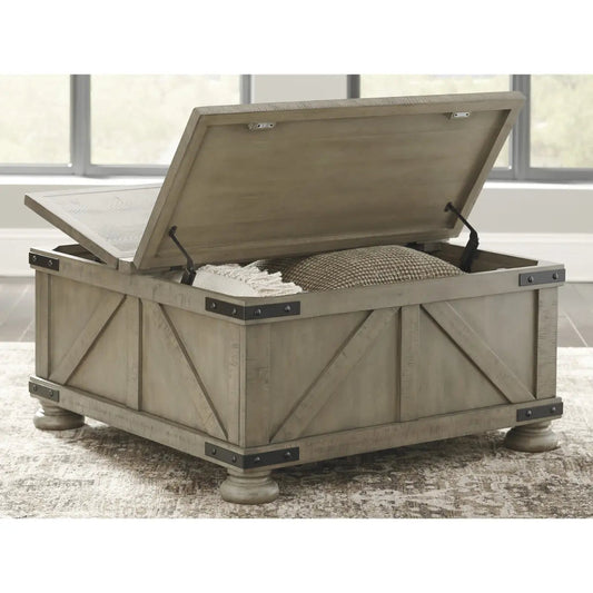 Unlock a quaint touch of farmhouse style and convenience in your living area with this lift top coffee table. Its......