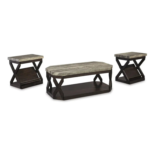 A cool cross of textural elements make this coffee table set with crisscross details a striking choice. Bathed in a......