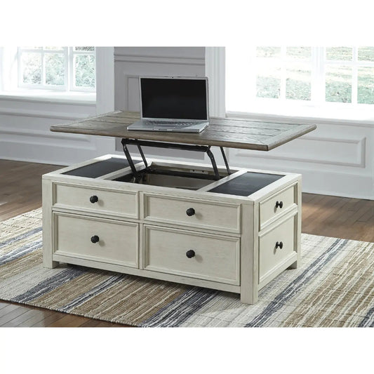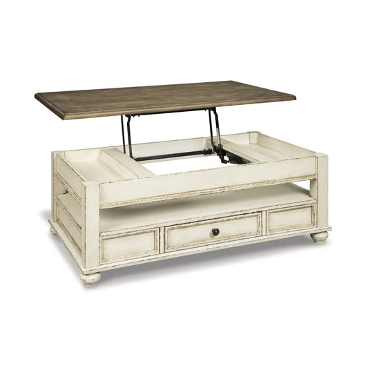 This lift top coffee table is traditional cottage styling taken to a new level. Antiqued two-tone finish blends a chipped......