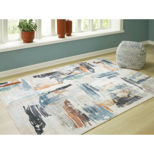 Add abstract flair to your floor with this rug. In a mixed palette of cool hues and muted neutrals, it’s......