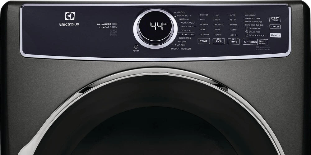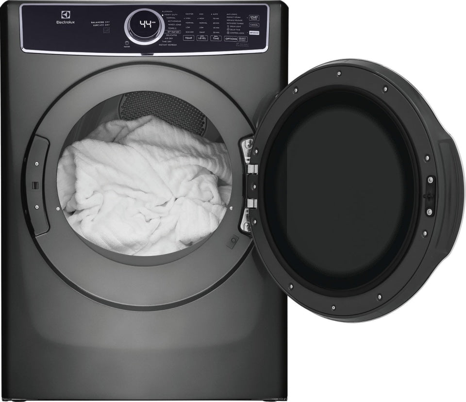 The Electrolux front load electric dryer with Balanced Dry™ technology prevents temperature spikes to keep fabrics cooler throughout the dry cycle. LuxCare® Dry uses an advanced moisture sensor to prevent over or under-drying. LuxCare™ Dry System Save time and energy and protect items from over or under-drying with our unique...