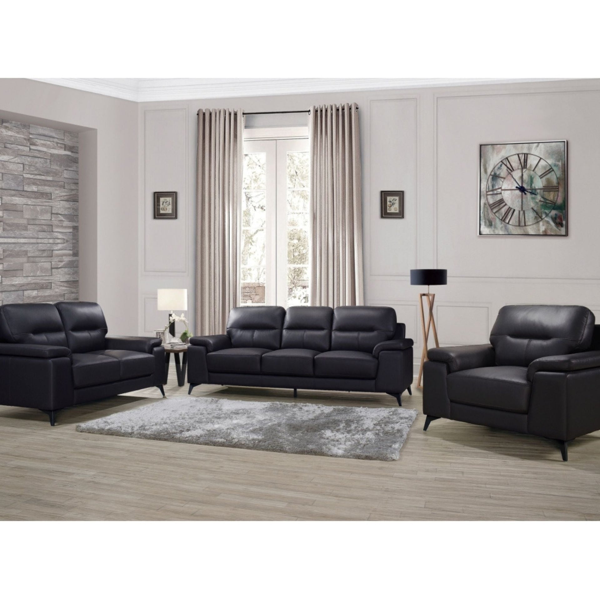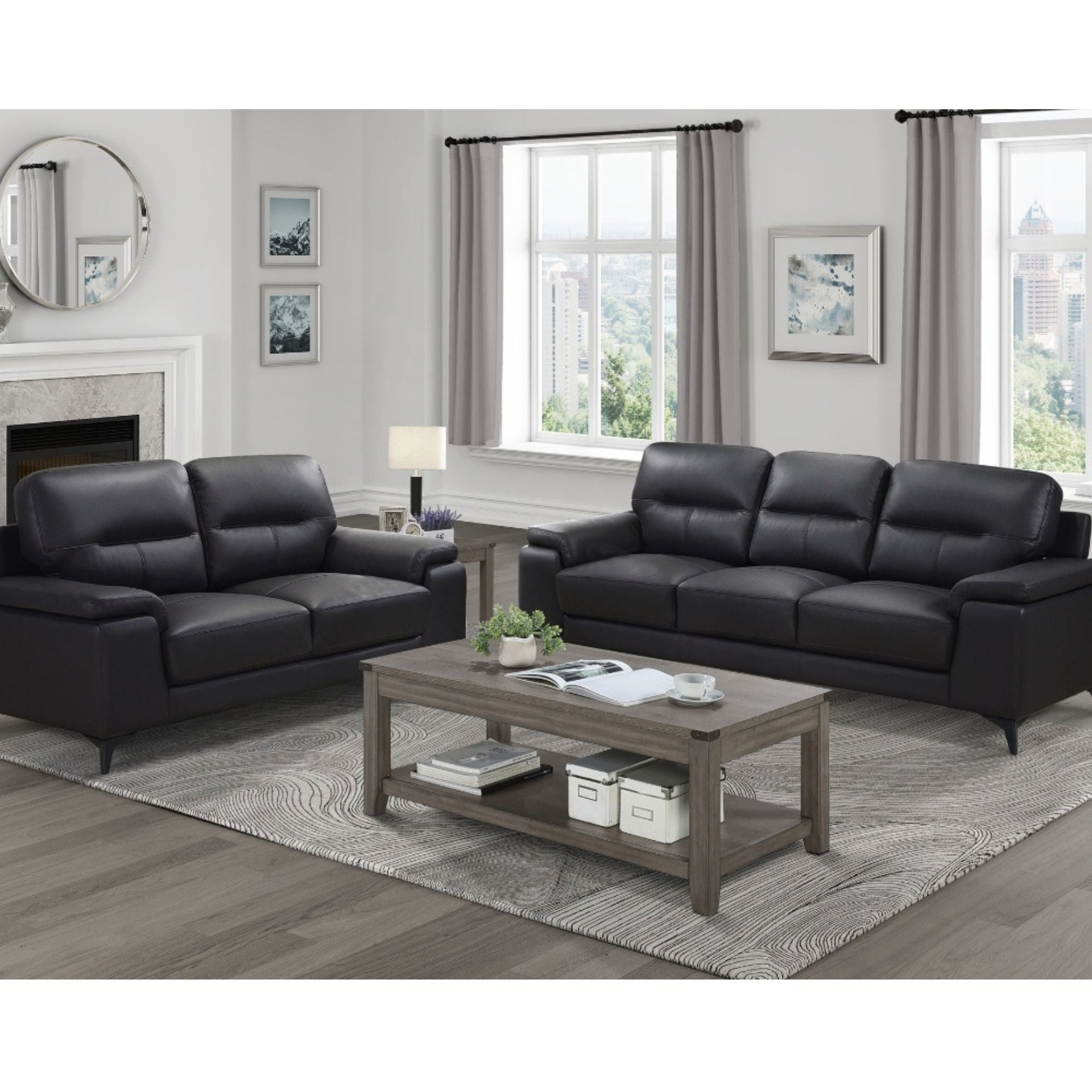 Designed for the modern home, the Mischa Collection Sofa seamlessly blends the luxurious feel of genuine leather with the comfort of sumptuous padded seating. The seat fronts are covered in rich black top-grain leather, while high-quality faux leather-match protects the sides and back, reinforcing the overall luxe look and feel...