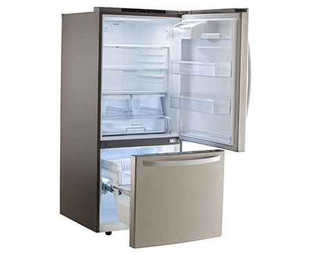 Description This LG bottom-mount refrigerator offers an easy and efficient way to store your food. At a capacity of 22 cubic feet and a width of 30 inches, it is slimly built to elegantly fit into any kitchen space. The ENERGY STAR® rating means this refrigerator uses less energy in...