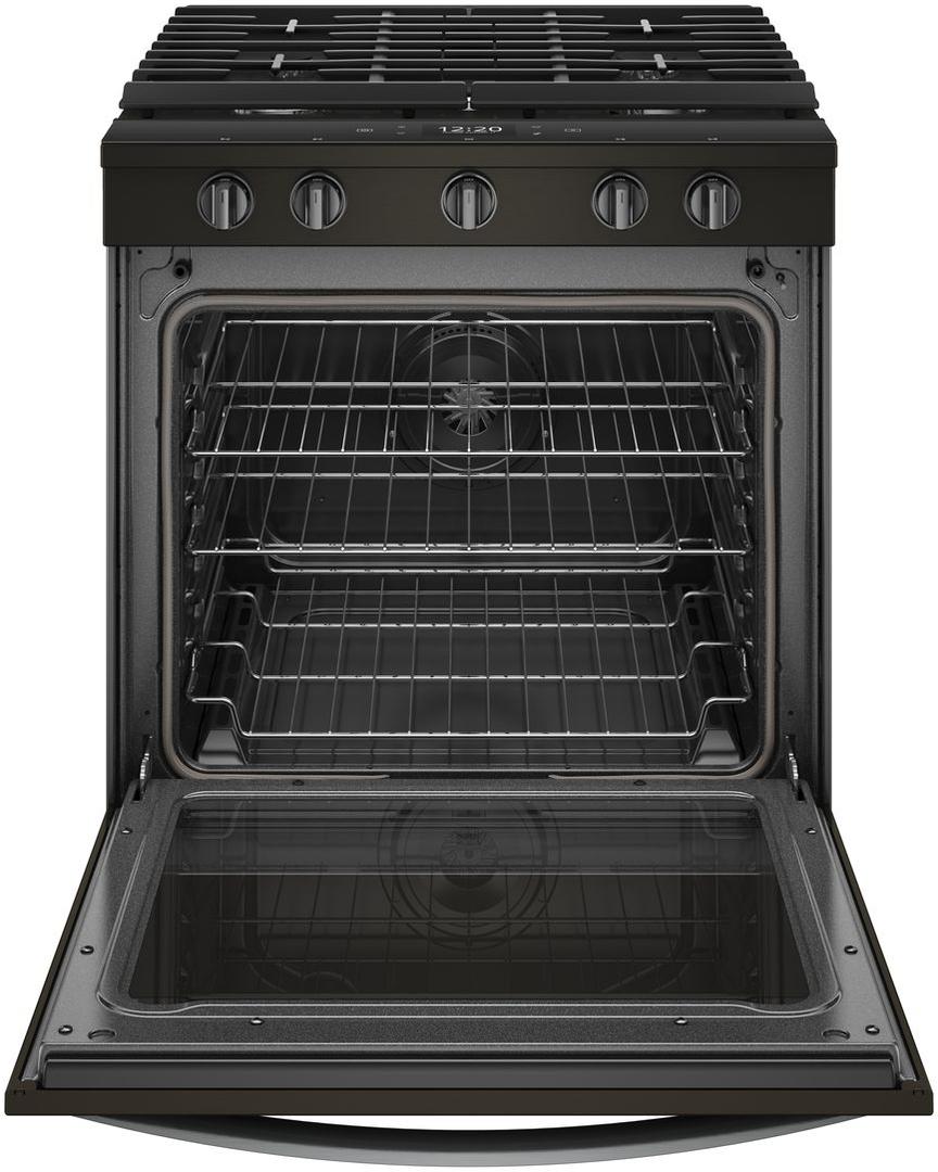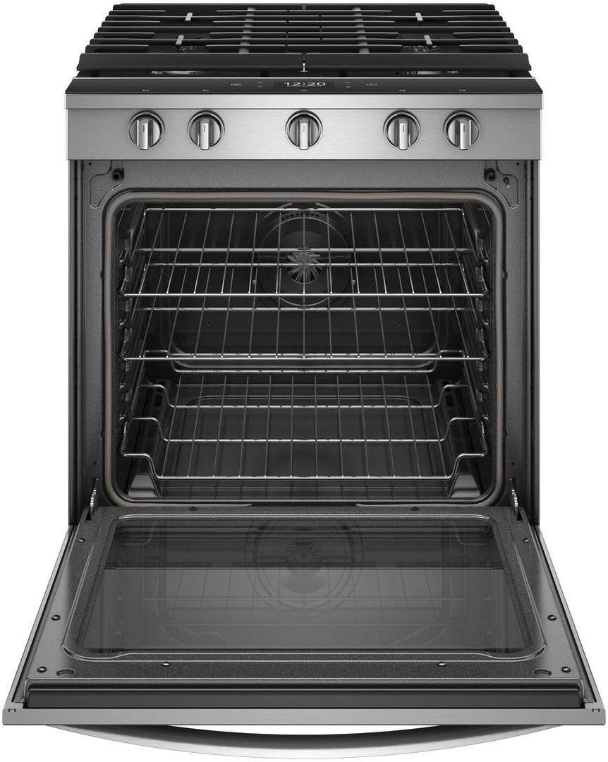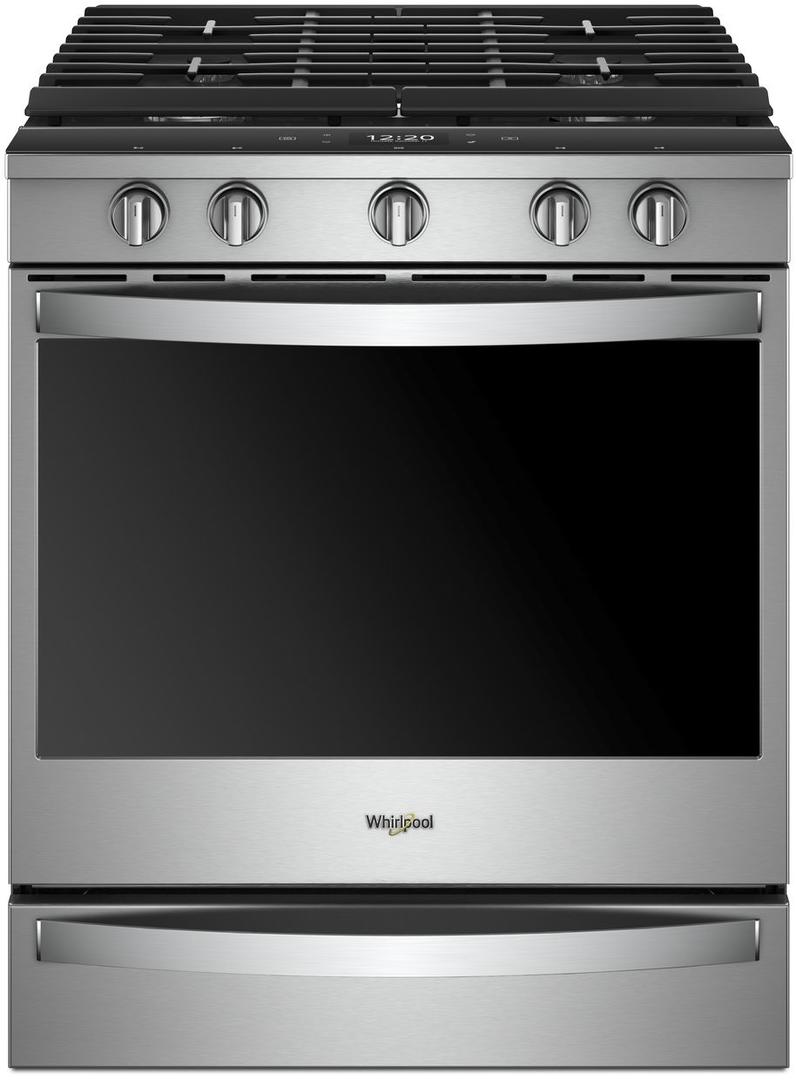 Description Features Specifications This 30" Slide-In Range comes with 5 Burners and 5.8 cu. ft.  Oven. It also is WiFi connected, which adds even more features; once it is synced with the smartphone, this range can easily be controlled with simple voice commands. This range also features other various features, such...