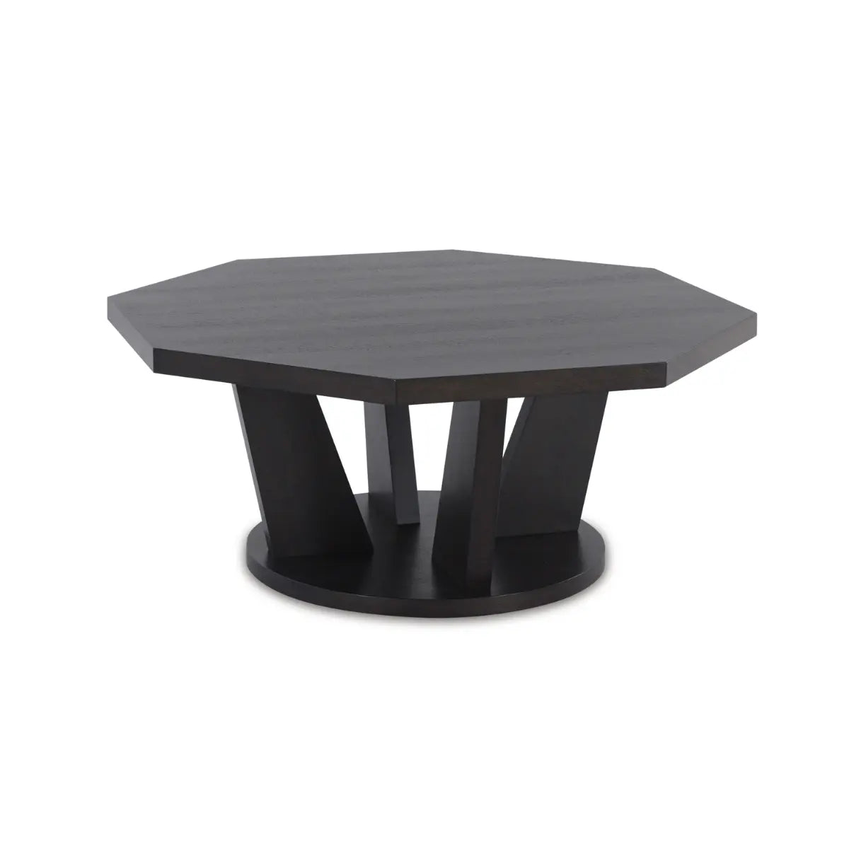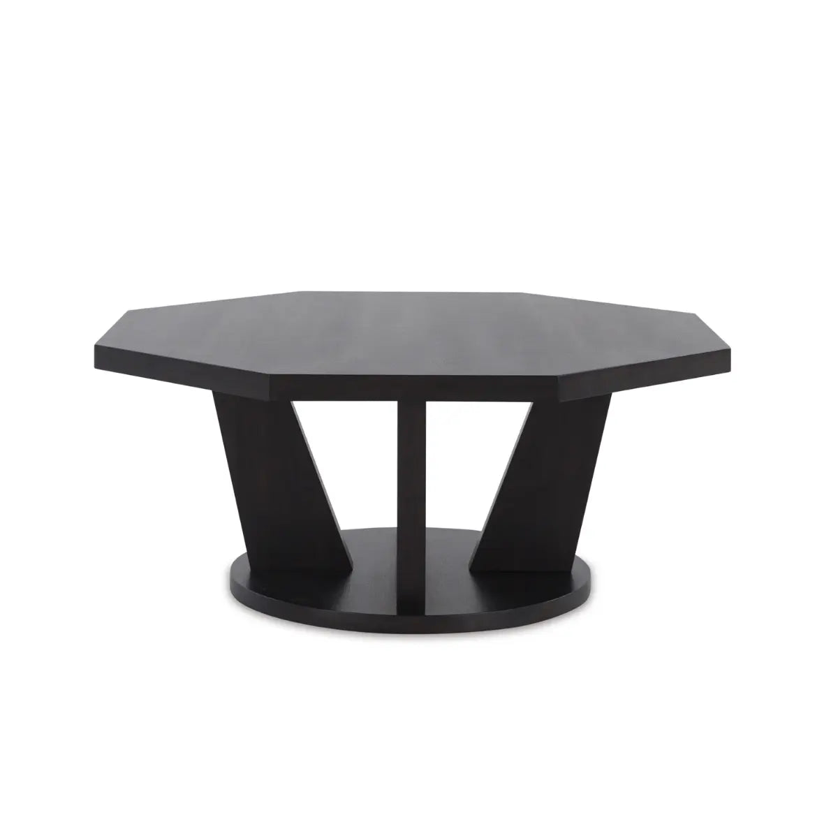 For the ultimate in casual contemporary styling, accent your sofa or loveseat with this chic coffee table. Designed with an octagonal top and trapezoid-shaped legs, its geometric elements create a bold, eye-catching look. Features:  Made with mango wood veneer and MDF substrates Dark espresso brown finish Octagonal top Trapezoid-shaped legs...