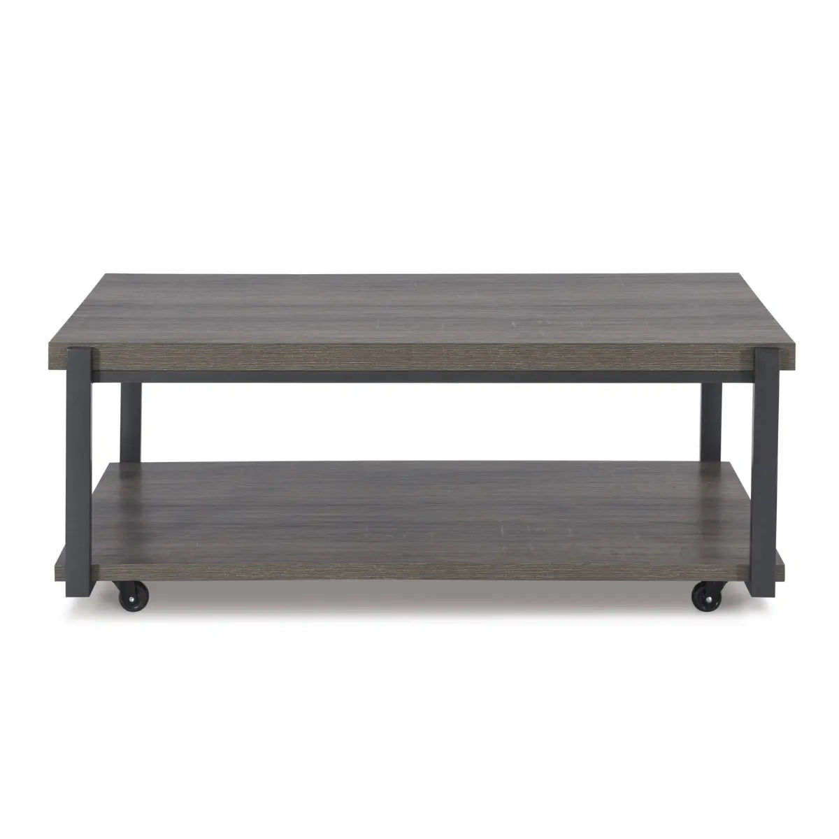 A cohesive, casual contemporary ensemble. This table set is equal parts sleek form and routine practicality. If you're hosting guests or need space to stretch out in a recliner, rolling casters on the coffee table clear up extra floor space in a snap. Each table is outfitted with a lower...