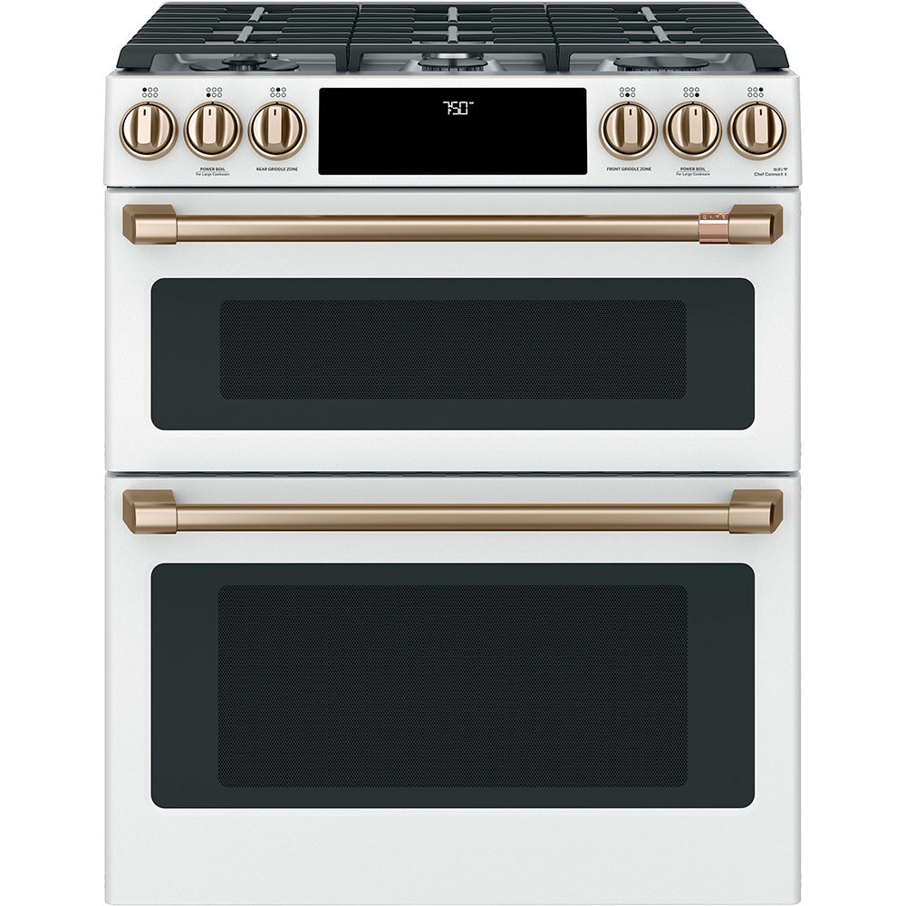 Package Include Café™ Energy Star® 23.1 Cu. Ft. Counter-Depth French-Door Refrigerator - CWE23SP4MW2 Café 30 Inch Slide-In, Front-Control, Dual-Fuel, Double-Oven Range with Convection Matte White - CC2S950P4MW2 Café™ Stainless Interior Built-In Dishwasher with Hidden Controls Matte WhiteCDT875P4NW2 For more information about this bundle or other appliance package visit our store locations or...