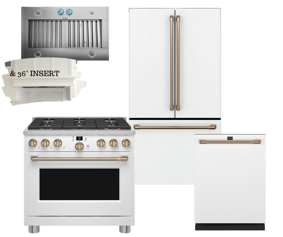 Café 36" Counter Depth Fridge, Commercial Design Stove and Dishwasher with Insert