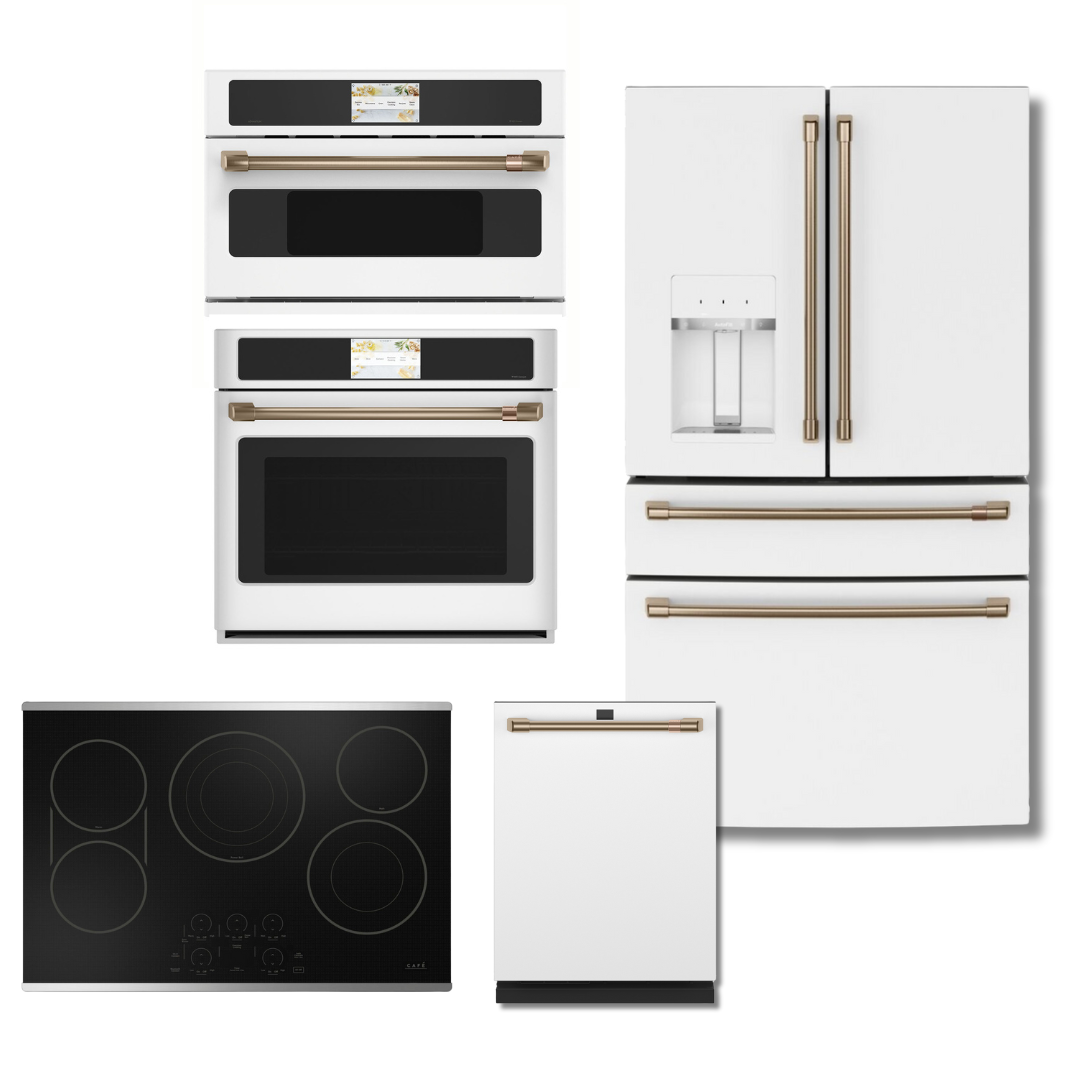 Package Includes  Café 22.3 Cu. Ft. Smart Counter-Depth 4-Door French-Door Refrigerator Matte White - CXE22DP4PW2 Café 36" Touch-Control Electric Cooktop Stainless Steel - CEP90362TSS Café 30'' Five in One Oven with 120V Advantium® Technology Matte White- CSB913P4NW2 Café 30" Single Wall oven with Convection Technology - CTS90DP4NW2 Cafe 24" Dishwasher...