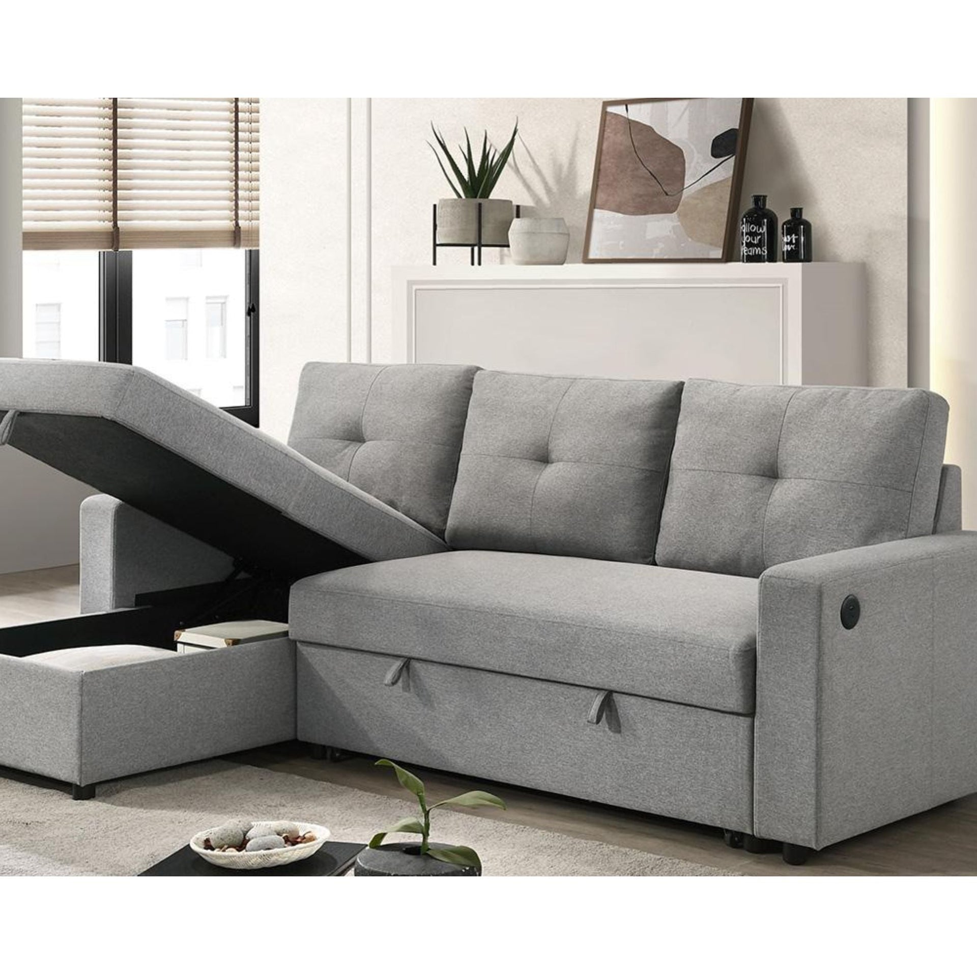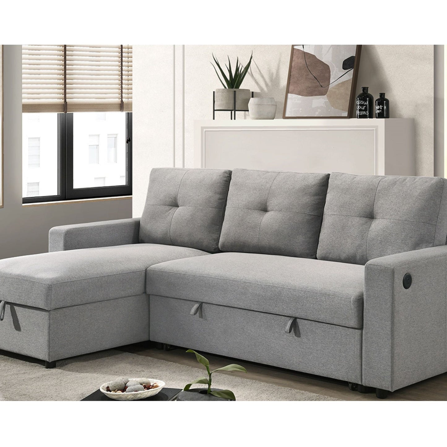 The Ceillo Sectional offers both style and functionality with its inviting light grey linen fabric upholstery, making it a versatile addition to any neutral décor. Designed for modern living, this sectional easily converts into a bed, providing extra sleeping space when needed. Its clean lines and contemporary silhouette ensure a...