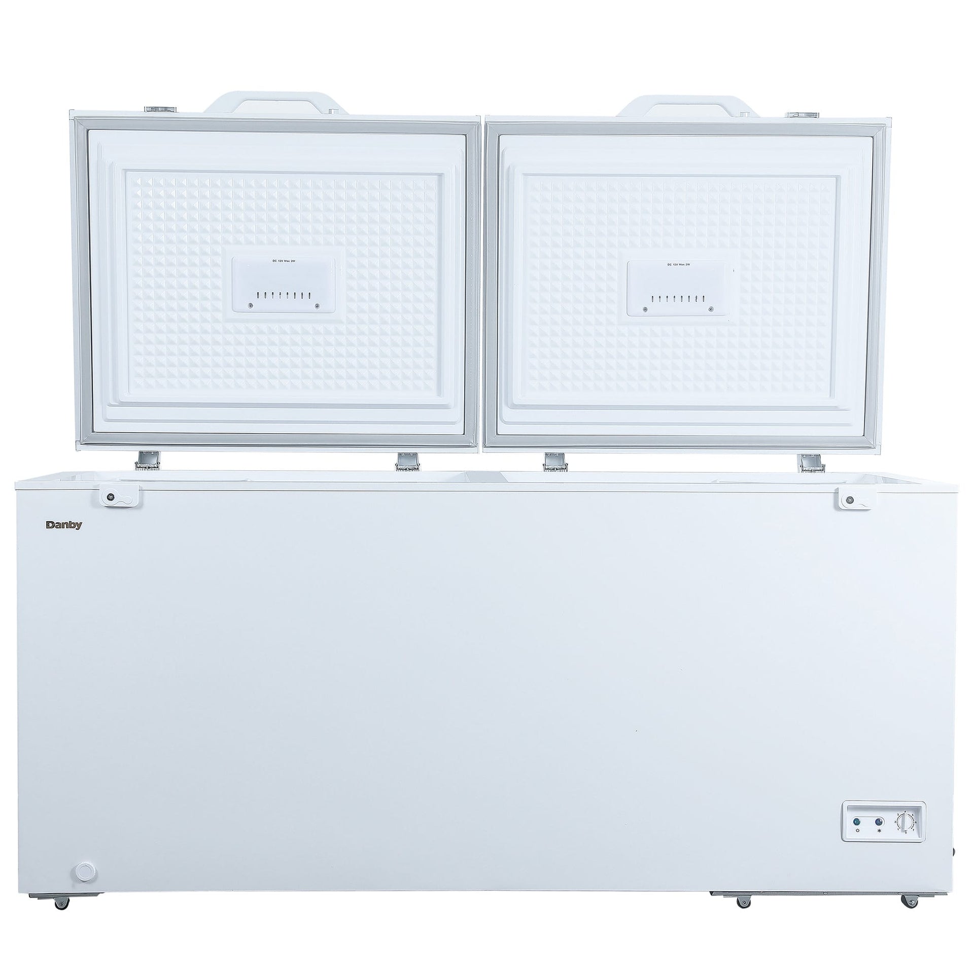 Description Features Specifications Introducing the two-door chest freezer by Danby. Providing a generous 17.1 cu. ft. (484.2 L) of storage capacity, making it ideal for large families. Located on the front is a mounted mechanical thermostat for convenience, offering adjustable variable temperature range. All your favorite food items can be...