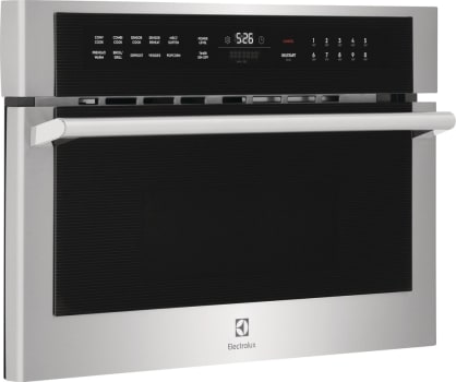 The sleek design of this microwave with glass touch controls, stainless steel handle with gunmetal chrome standoffs and Electrolux signature pinstripe design looks beautiful in any kitchen Sleek Design Convection Cooking Sensor Cook Function Multi-Stage Cooking