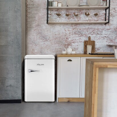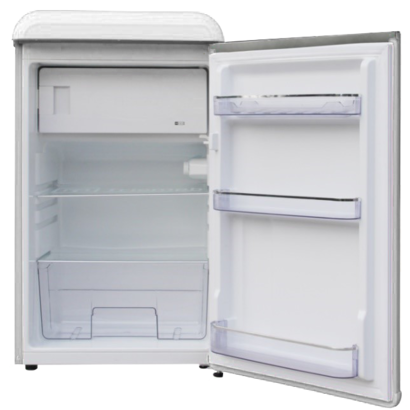 Description Features Specifications Meet the Epic 4.3 cu.ft White Retro Compact Refrigerator, a sleek and vibrant addition to any space. Boasting a true separate freezer, interior lights, 1 and a half adjustable glass shelves, two full-width door bins, gallon door storage, and a transparent crisper, this refrigerator is both stylish...