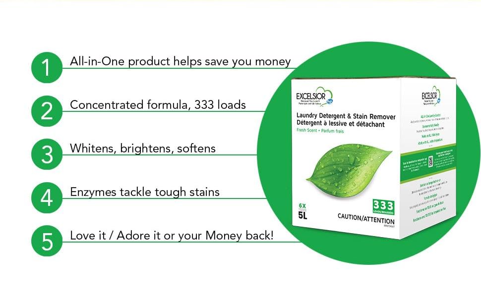 Excelsior HE Laundry Detergent Description The Excelsior HE Laundry Detergent is a revolutionary cleaning solution that delivers outstanding performance, fresh results, and incredible value. Specially designed for high-efficiency washers, it is also safe to use in traditional machines. With its ultra-concentrated formula, you only need 15 mL (1 tablespoon) per...