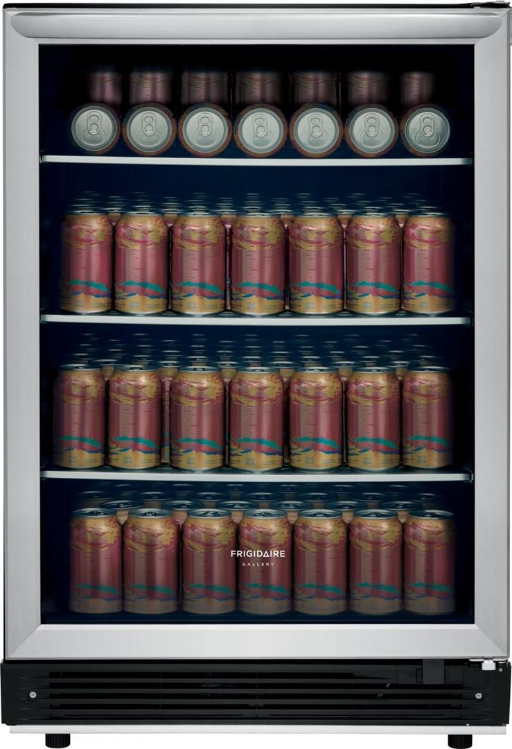 This 24" beverage center from the Gallery series by Frigidaire comes with 5.3 cu. ft. capacity that can fit up to 165 cans. It also features a door alarm, LED interior lighting, reversible door swing, precision temperature control, adjustable glass shelves and tinted glass window with stainless steel trim. 165...