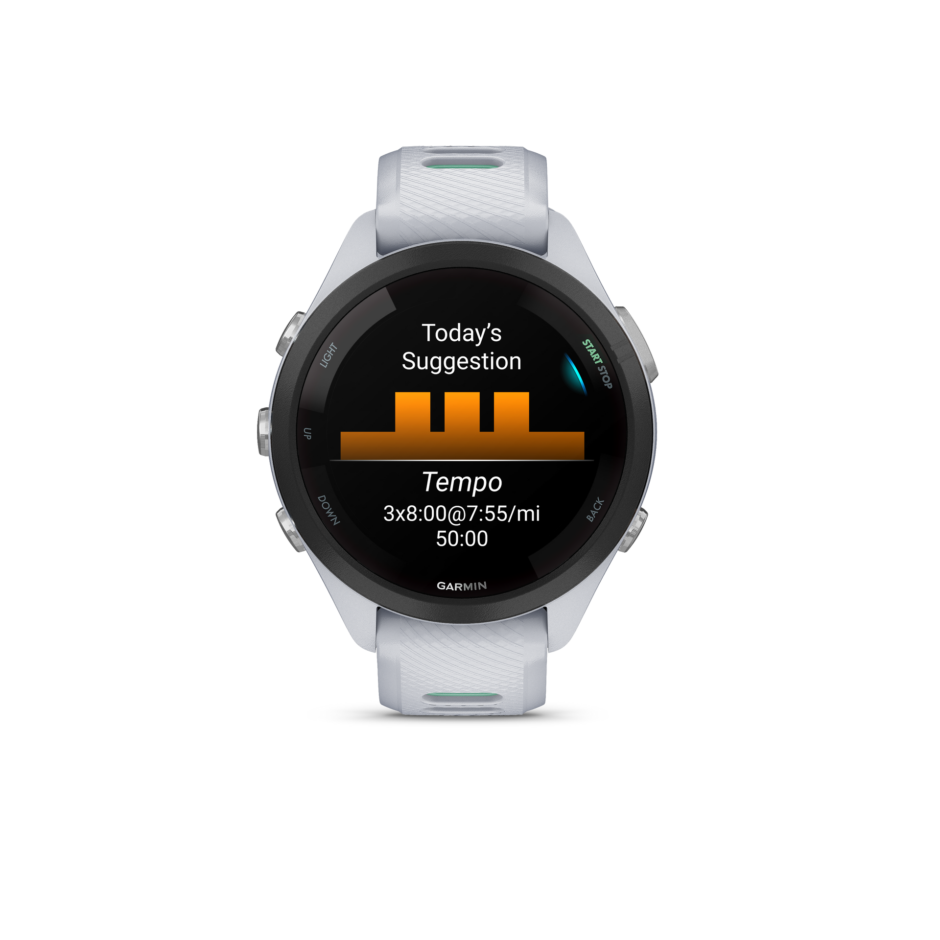 Product Description Train brilliantly with the smaller-sized Forerunner® 265S GPS running smartwatch. Its colorful AMOLED touchscreen display stands out while the training readiness feature — which tells you when you’re primed for a productive session — helps you crush your goals. Wake up to your morning report with HRV status...