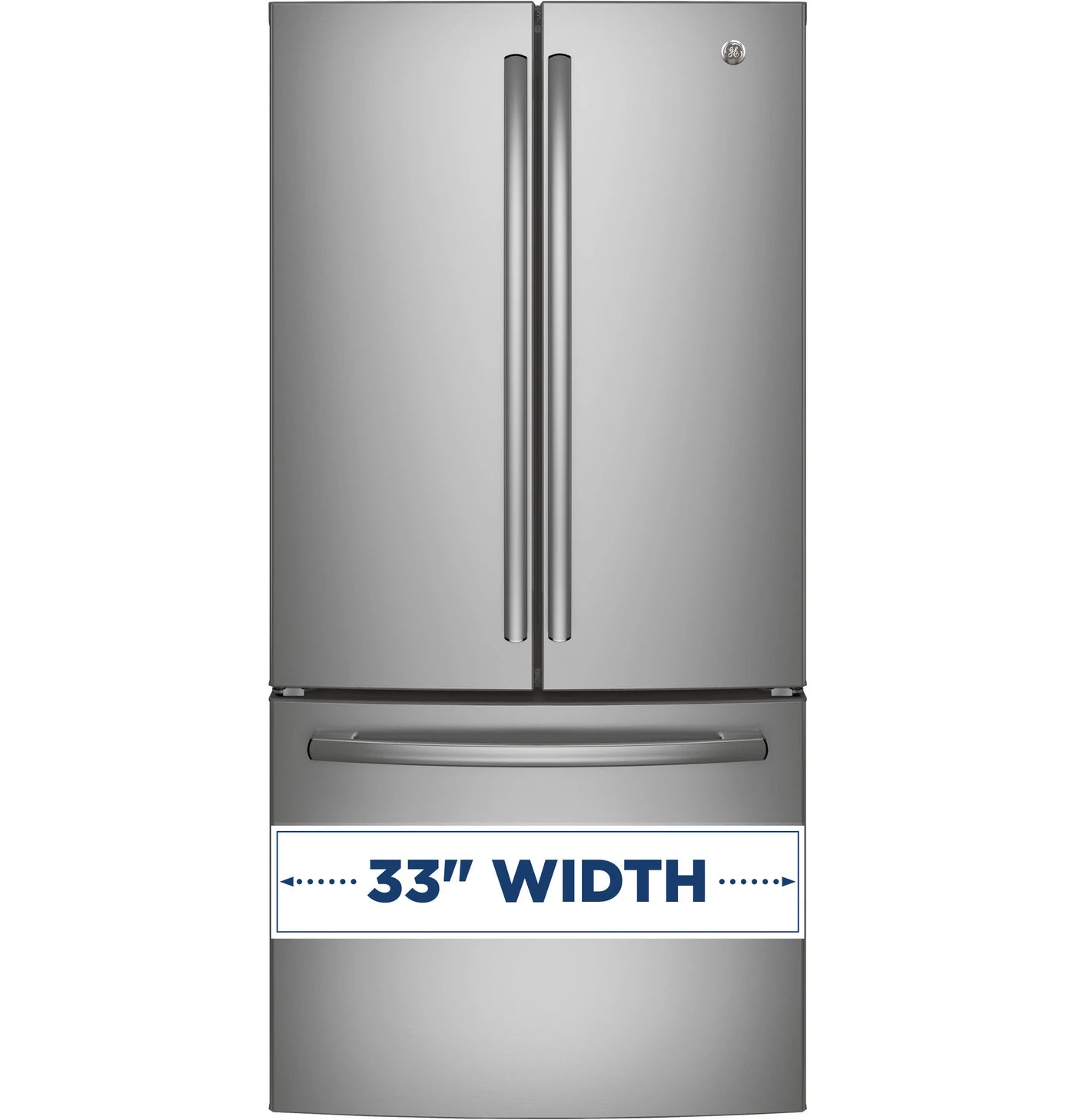 GE 33" 24.8 Cu. Ft. French Door Refrigerator with LED Lighting - Refrigerator - GE - Topchoice Electronics