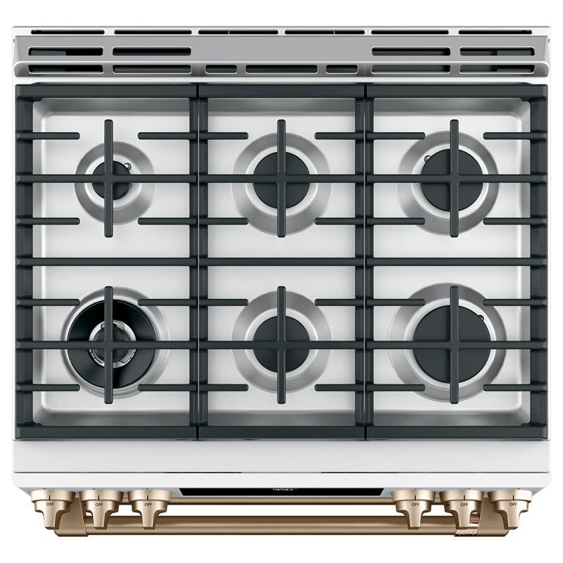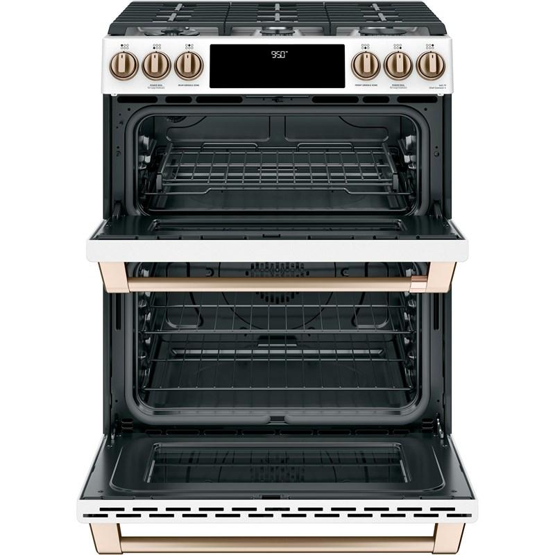 Description Features Specifications This GE Café™ 30-inch slide-in, double oven dual fuel range features 6 burners, LED control panel, WiFi connect and a Chef connect. Built-In WiFi, Powered by SmartHQ App Manage all aspects of your kitchen with the help of the SmartHQ™ App or your voice assistant (Select features...