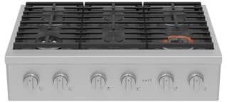 Revel in this Cafe 36-inch gas cooktop. Commercial-style design and function with six burners give you the versatility you need to host any-sized soiree.