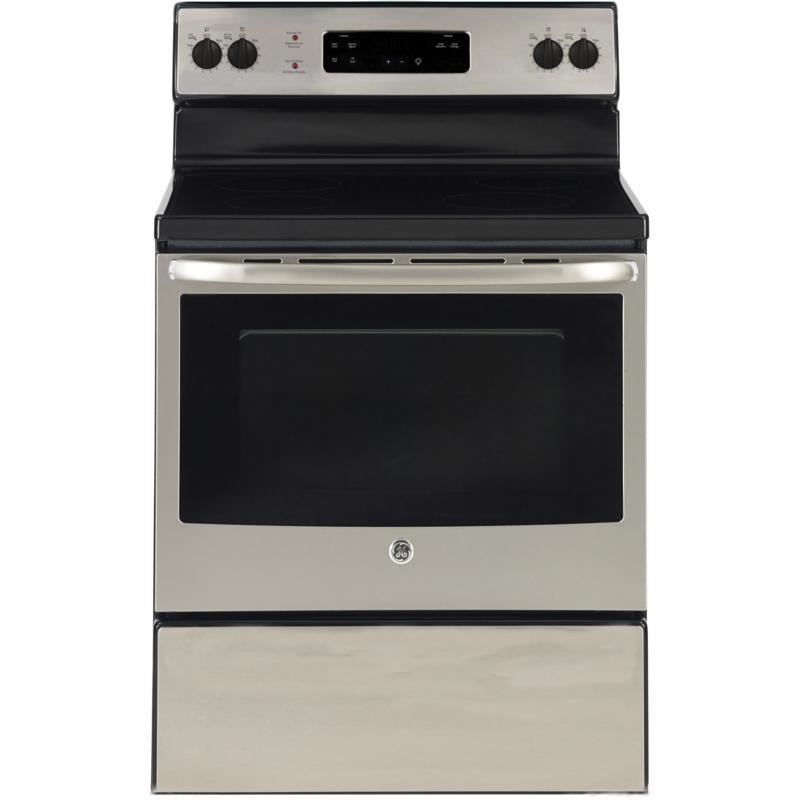 With this GE freestanding electric smooth top range, you'll truly enjoy cooking, not just endure it. It features a large 5.0 cu. ft. capacity so you can save time on your more elaborate meals by fitting more dishes in at once. Among other features, it also sports a smooth top cooking surface that's super easy to clean.