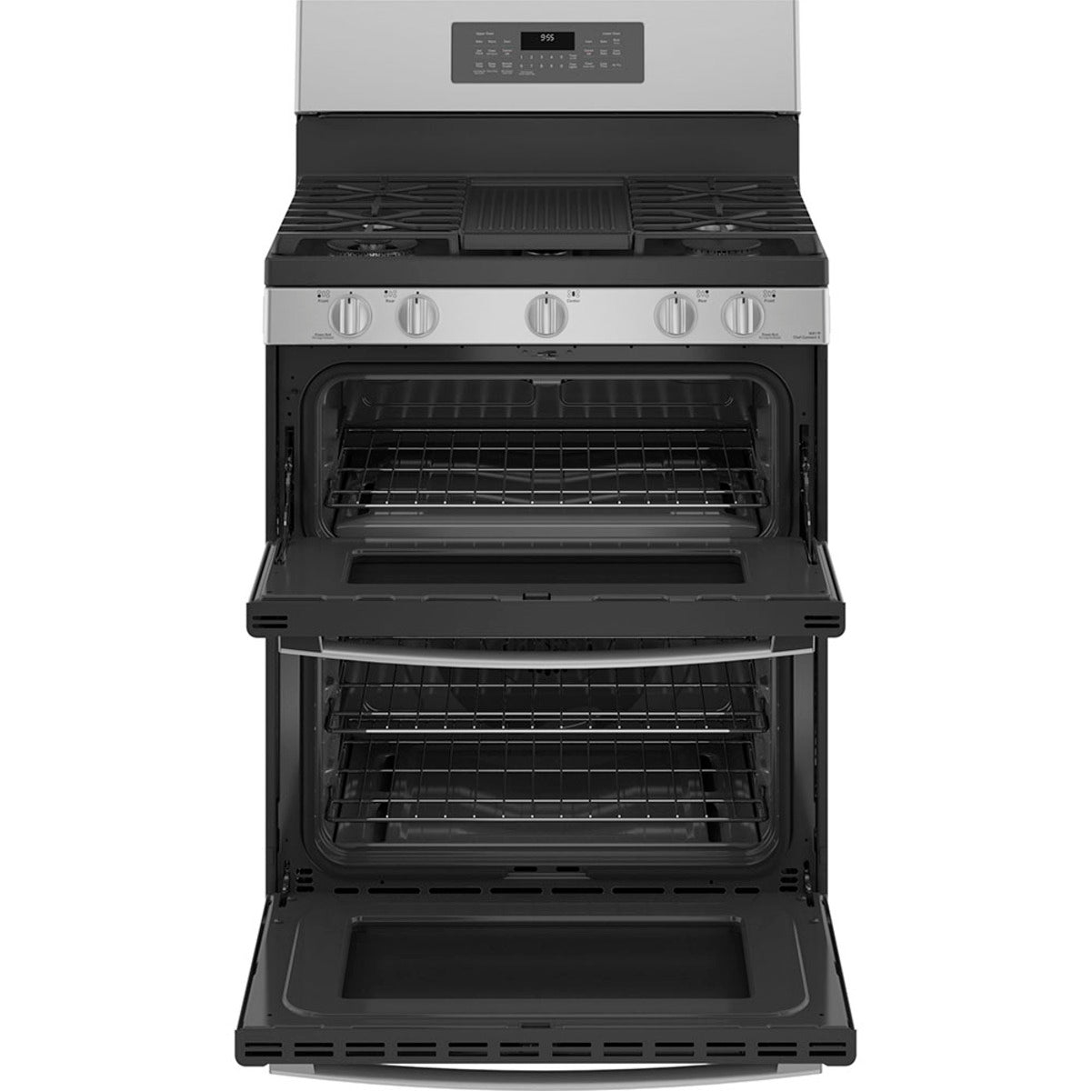 Description Features Specifications Cook like a pro with the GE Profile 30" Double Oven Gas Range. Enjoy a no-preheat air frying experience, saving you time and energy. Keep dishes piping hot with the double oven feature and experience a sleek stainless steel design. Elevate your cooking game with GE Profile....