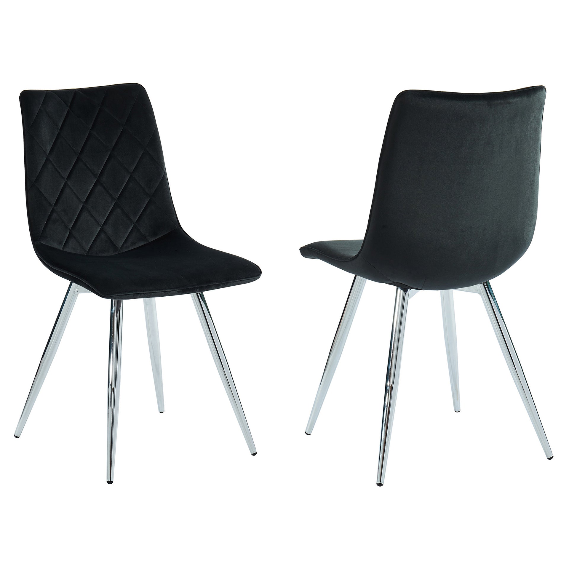 Description Features Specifications The clean, contemporary style of this dining chair makes it an easy match to a variety of table styles. The soft velvet upholstery is easy to wipe clean and the contoured seat with firm cushion will provide hours of comfort. Chrome-finished metal legs add a little sparkle...